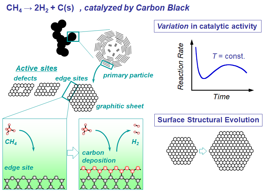 “Variation in catalytic activity of carbon black during methane decomposition: active sites estimations from surface structural characteristics” Y. Kameya, K. Hanamura Catalysis Letters (2012) [link]