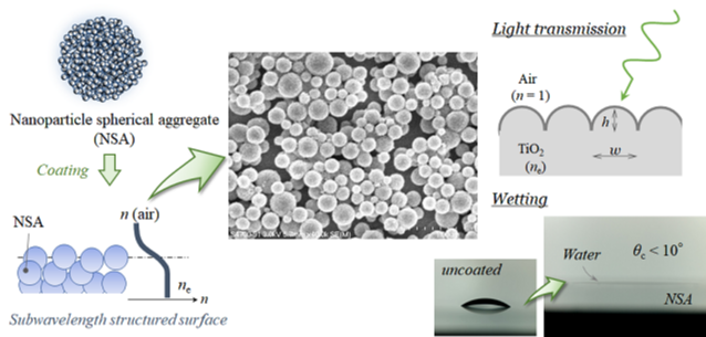 “Optical and superhydrophilic characteristics of TiO2 coating with subwavelength surface structure consisting of spherical nanoparticle aggregates” Y. Kameya, H. Yabe Coatings (2019) [link]