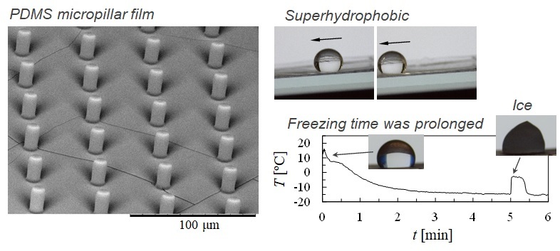 “Prolonged water freezing on a superhydrophobic micropillar polydimethylsiloxane film” Y. Kameya, Y. Takada Results in Materials (2022) [link]