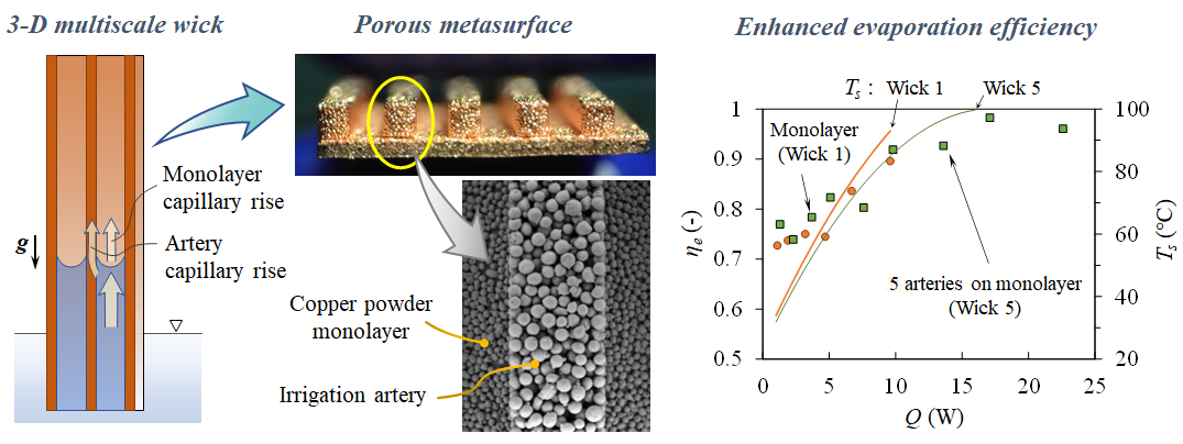 “Surface evaporation enhancement using porous metasurfaces: 3-D multiscale, open-system wick evaporators” Y. Kameya, Y. Takahashi, M. Kaviany International Journal of Heat and Mass Transfer (2023) [link]